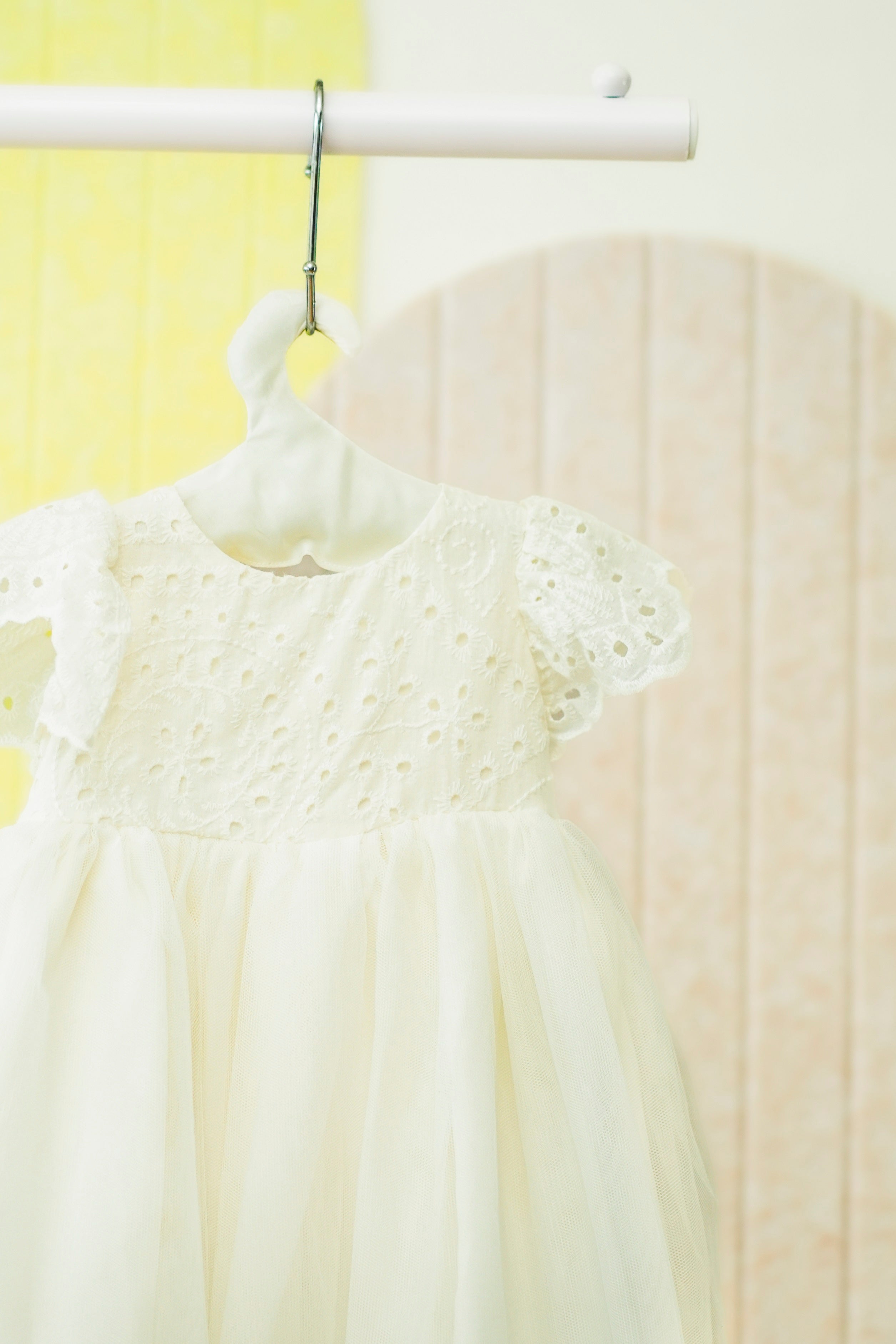 Challis plain cotton poly fabric with soft tulle and cotton lace trimming
